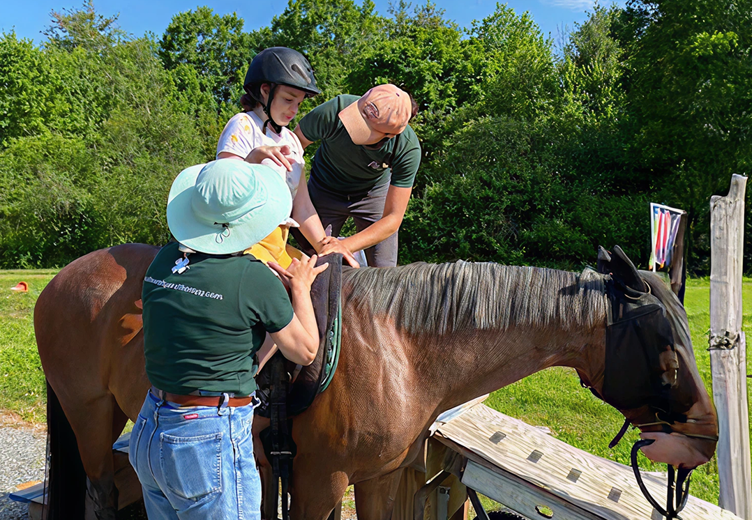 Jordan, age 35, enjoys hippotherapy, a way of riding horses that strengthens and tones her core and muscles. And it helps her connect with the horses and relax.